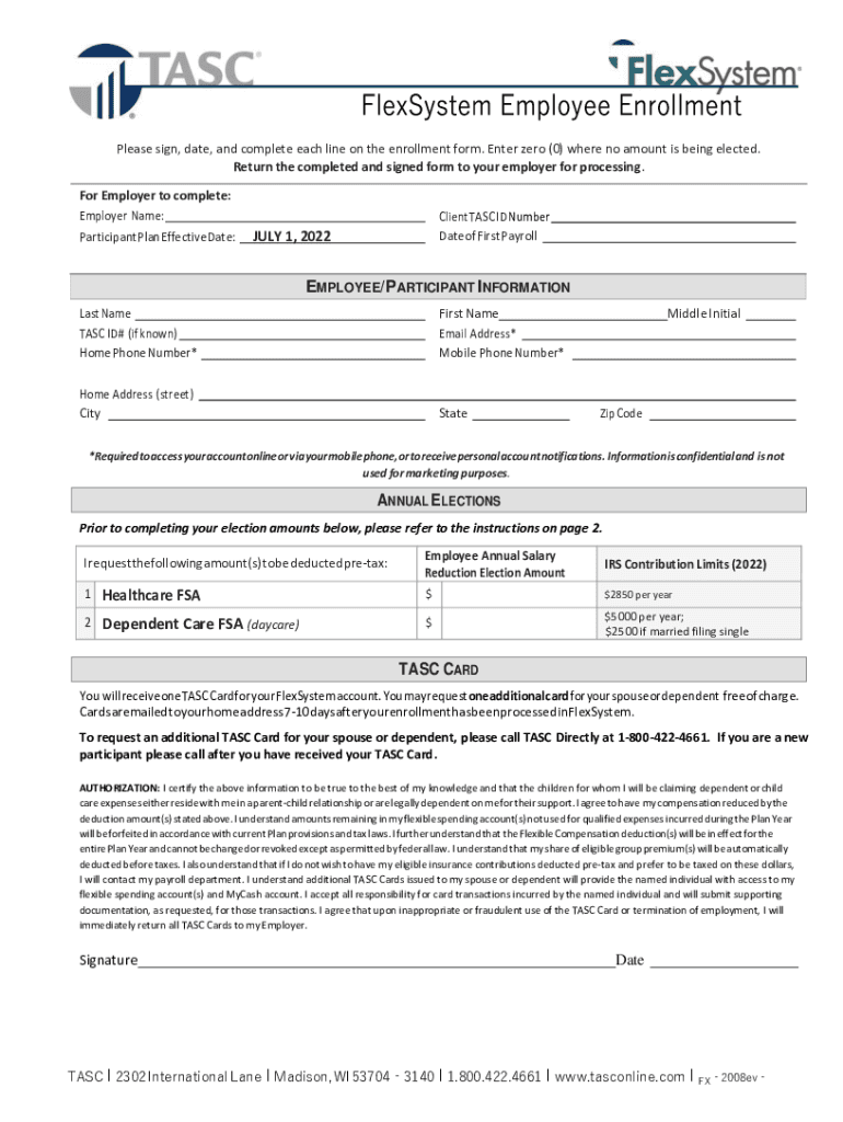 Please sign, date, and complete each line on the enrollment form. Enter zero (0) where no amount is being elected. Return the completed and signed form to your employer for processing. For Employer