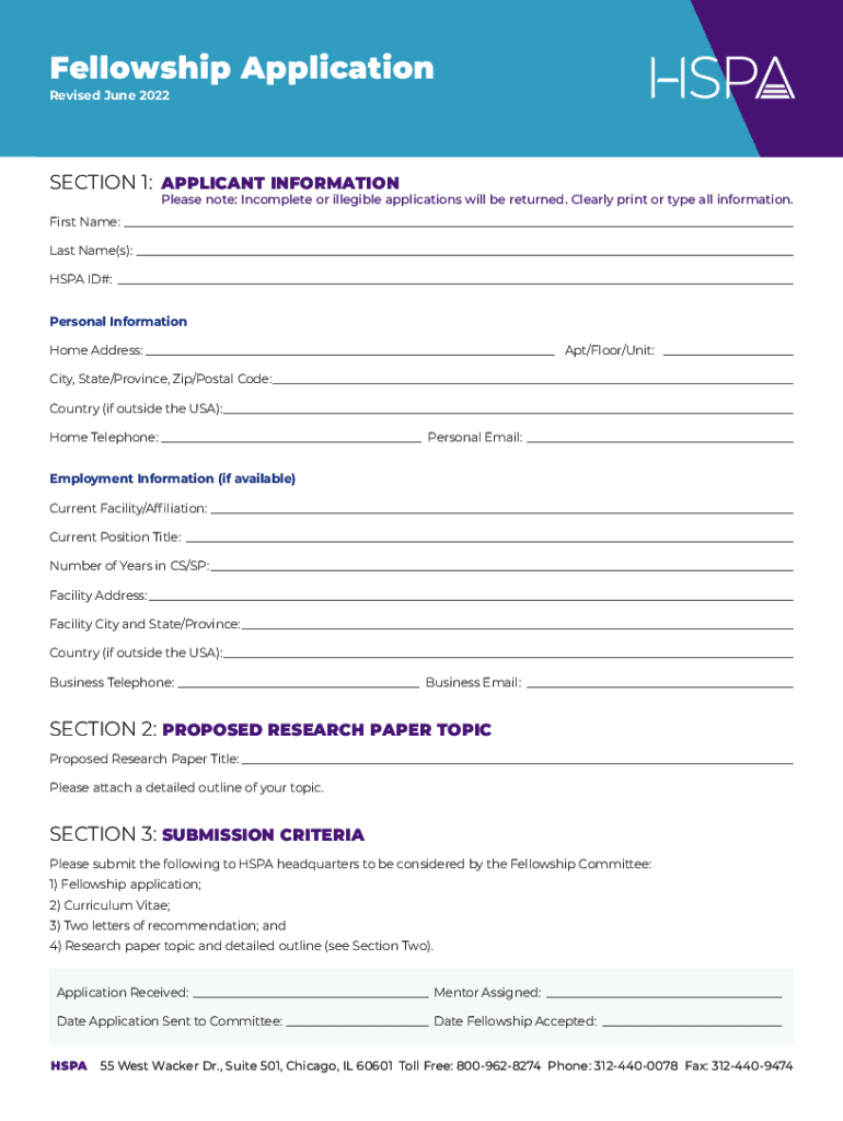 Fellowship Application - Hspa is not the form you're looking for?Search for another form here.