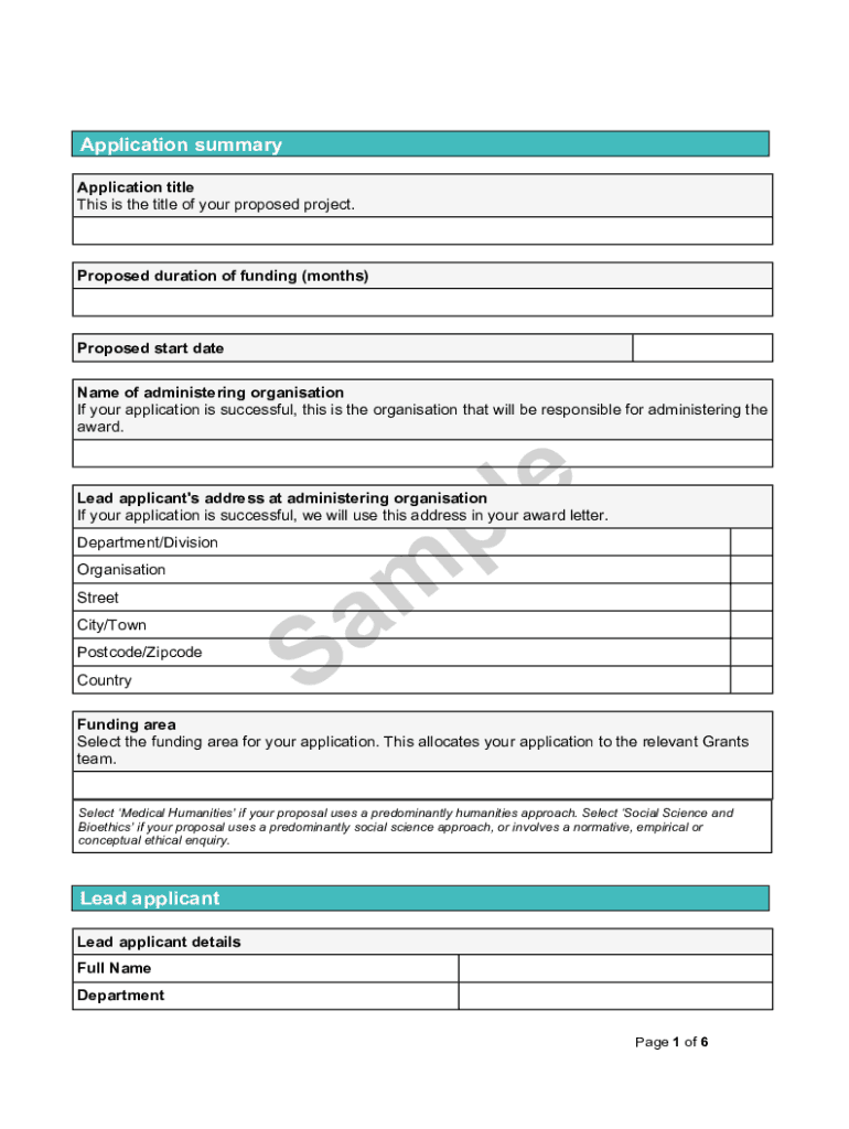 Application summary Application title This is the title of your proposed project. Proposed duration of funding (months)Proposed start date Name of administering organization If your application is