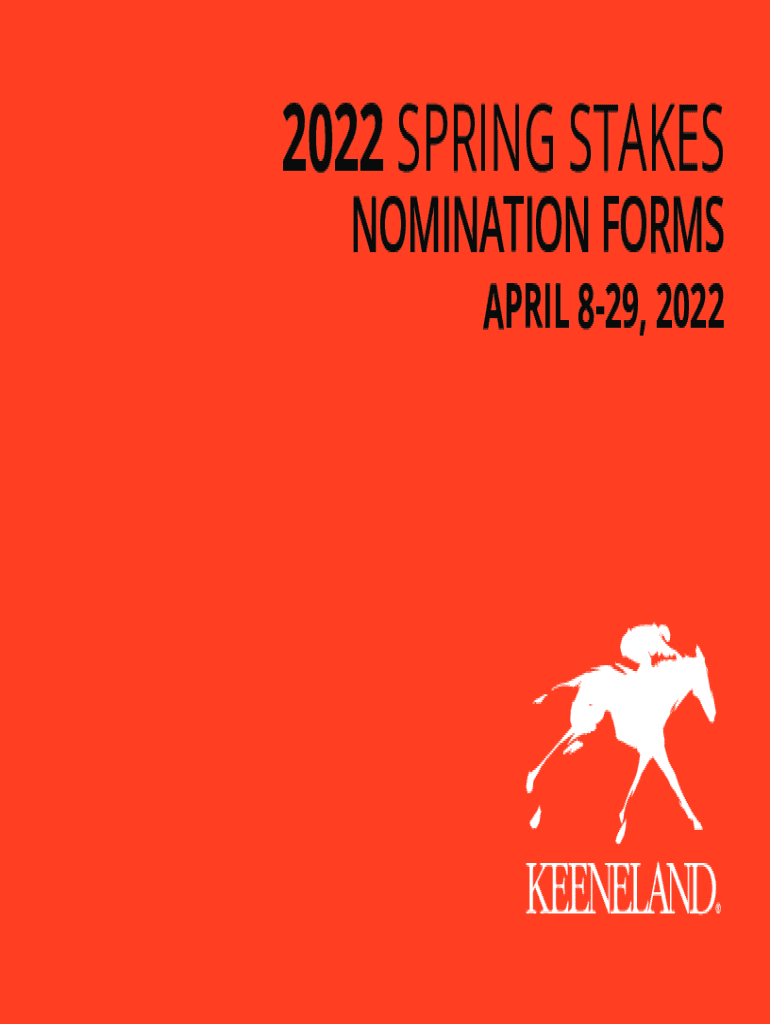 2022 SPRING STAKES NOMINATION FORESAIL 829, 2022Keeneland Stakes Races Spring 2022 DateStakesFri., April 8Central Bank Ashland (G1)Value$600,000Age, SexDistance3YearOld Fillies8 1/2 furlongsClosingFeeFebruary