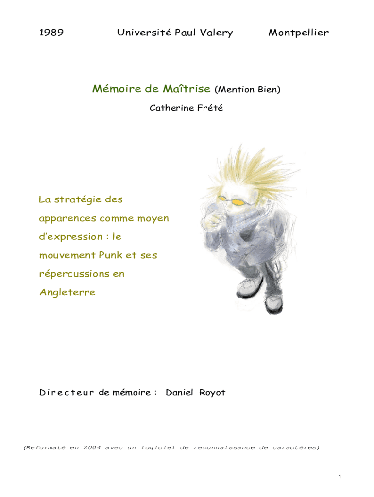 1989Universit Paul ValeryMontpellierMmoire de Matrise (Mention Bain)