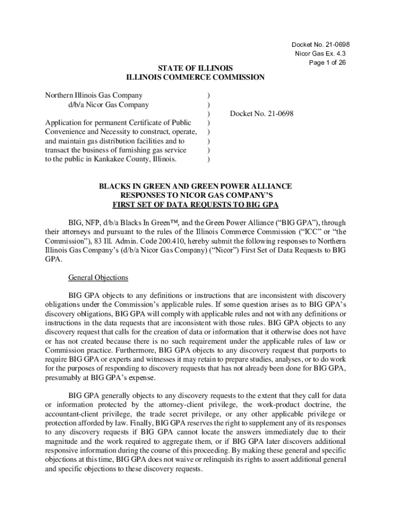 STATE OF ILLINOIS COMMERCE COMMISSION Northern Illinois Gas Company d/b/a Nicer Gas Company Application for permanent Certificate of Public Convenience and Necessity to construct, operate, and maintain