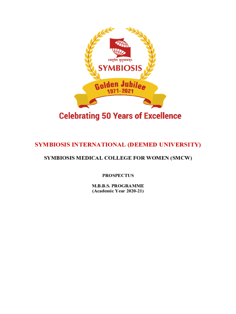 SYMBIOSIS INTERNATIONAL (DEEMED UNIVERSITY) SYMBIOSIS MEDICAL COLLEGE FOR WOMEN (SMC) PROSPECTUS M.B.B.S. Program (Academic Year 202021)Index to Content Sr. No. 1. Contents Page No. Symbiosis32. Symbiosis