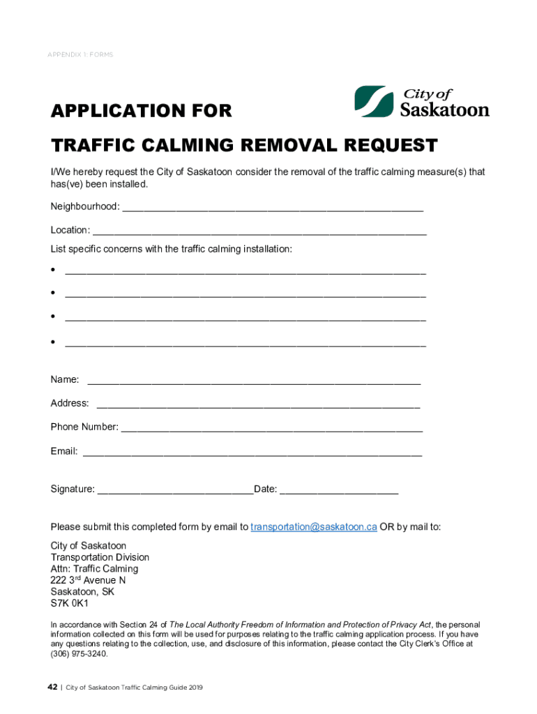 I/We hereby request the City of Saskatoon consider the removal of the traffic-calming measure(s) that