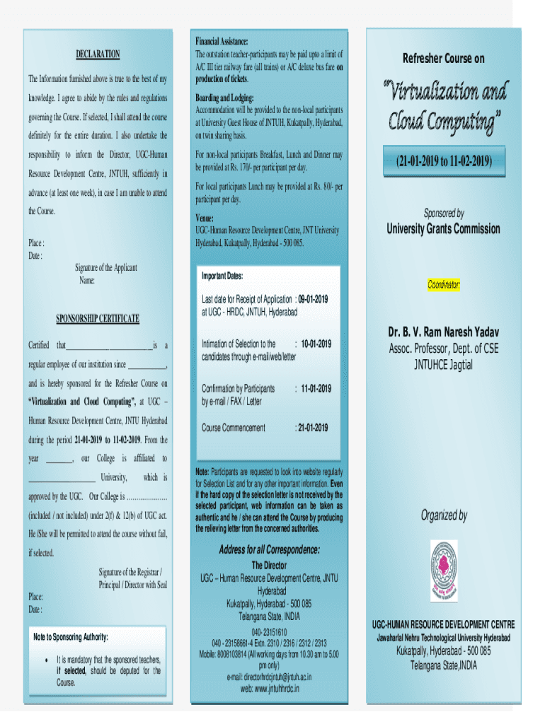 DECLARATION The Information furnished above is true to the best of my knowledge. I agree to abide by the rules and regulations governing the Course. If selected, I shall attend the course#definitely