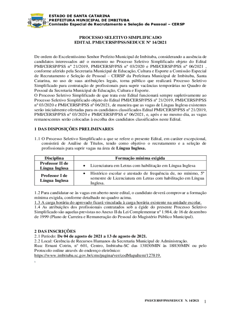 Get the free Comisso Especial de Recrutamento e Seleo de Pessoal