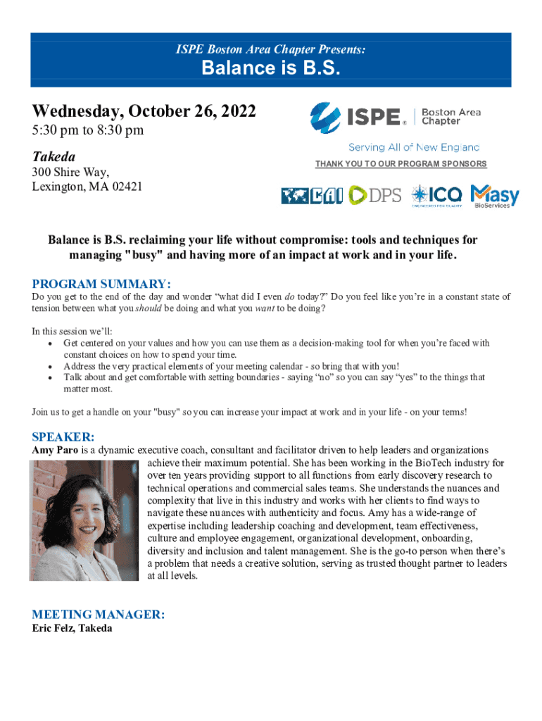 Get the free Balance is B.S. - ISPE Boston