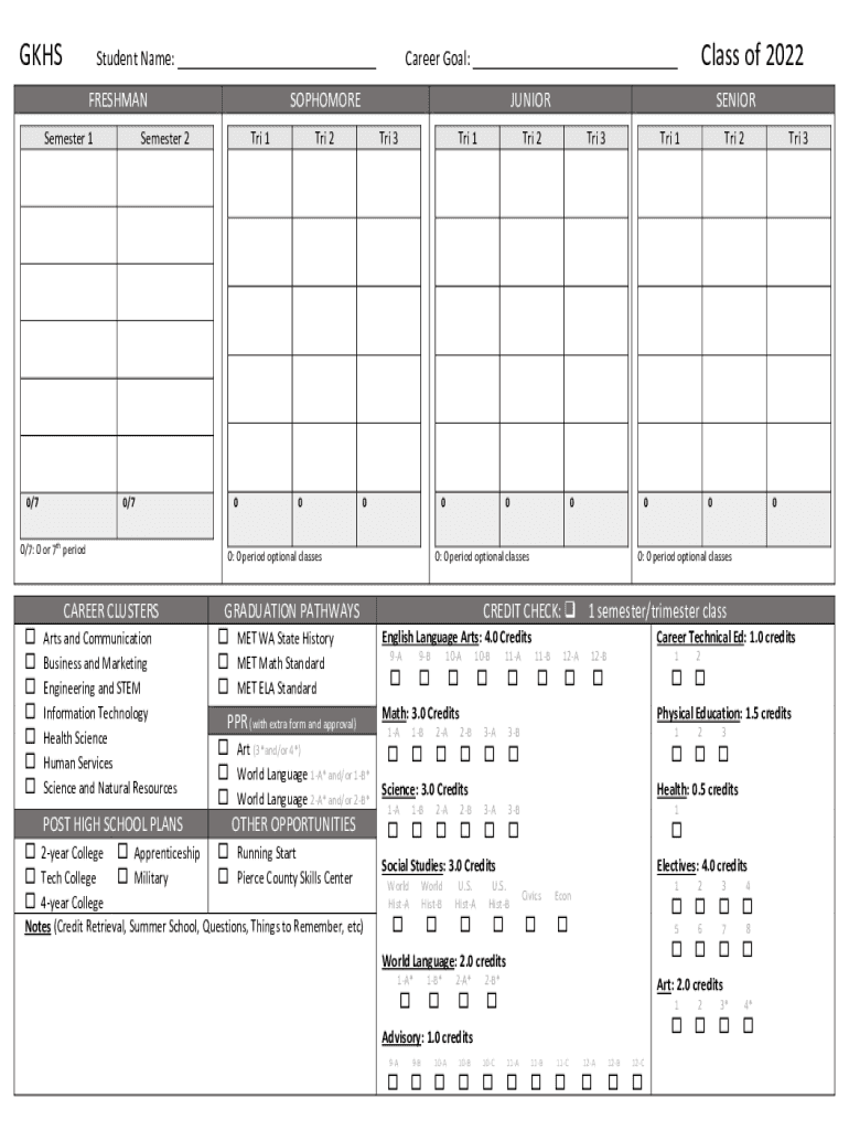 FRESHMANSemester 10/70/70/7: 0 or 7th periodCAREER CLUSTERS