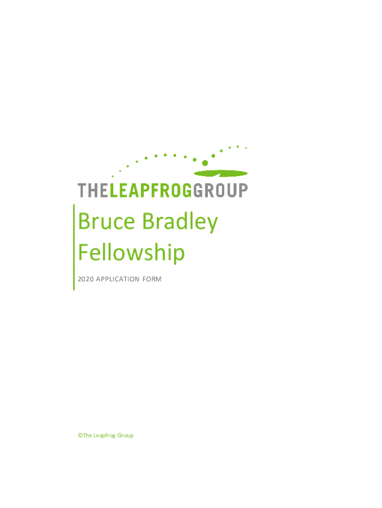 Bruce Bradley Fellowship 2020 APPLICATION Forth Leapfrog Groupie Bruce Bradley Fellowship is a yearlong education and training program sponsored by The Leapfrog Group for corporate health professionals