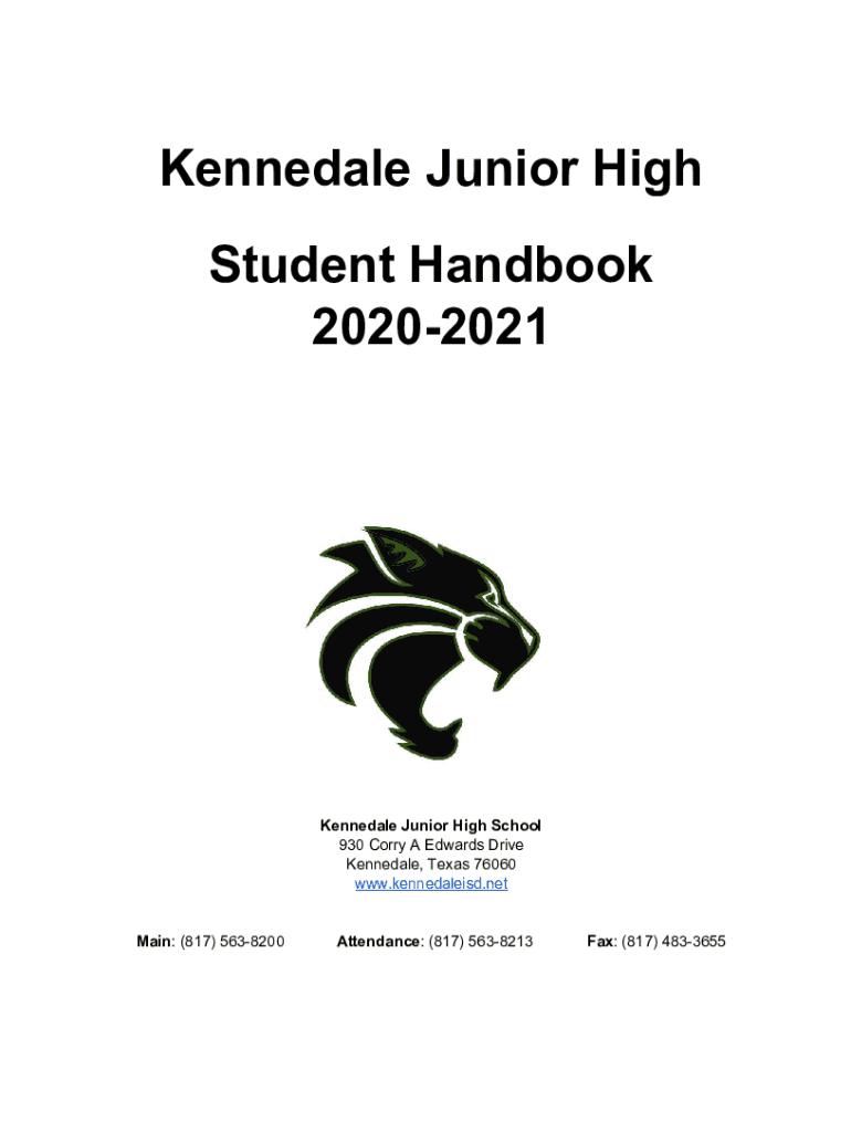 Kenned ale Junior High Student Handbook 20202021Kennedale Junior High School 930 Sorry A Edwards Drive Kenned ale, Texas 76060 www.kennedaleisd.netMain: (817) 5638200Attendance: (817) 5638213Fax: