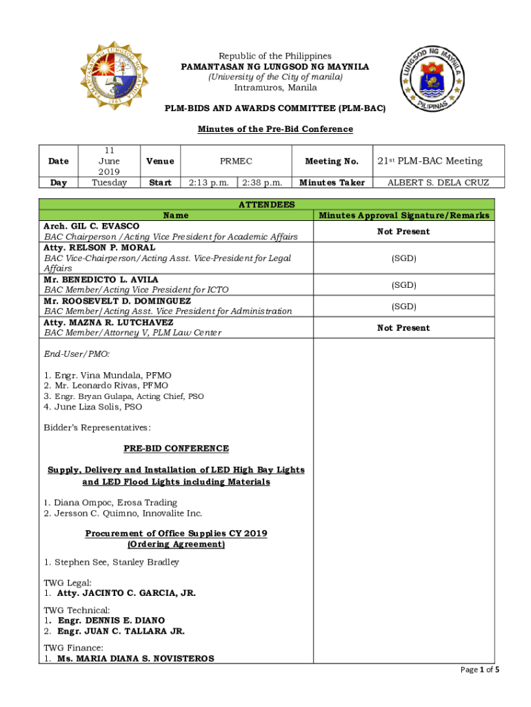 Republic of the Philippines PARANASAL NG LUNG SOD NG MANILA (University of the City of manila) Intramural, Manila PLAIDS AND AWARDS COMMITTEE (PLACE) Minutes of the PreBid Conference Date Day11 June