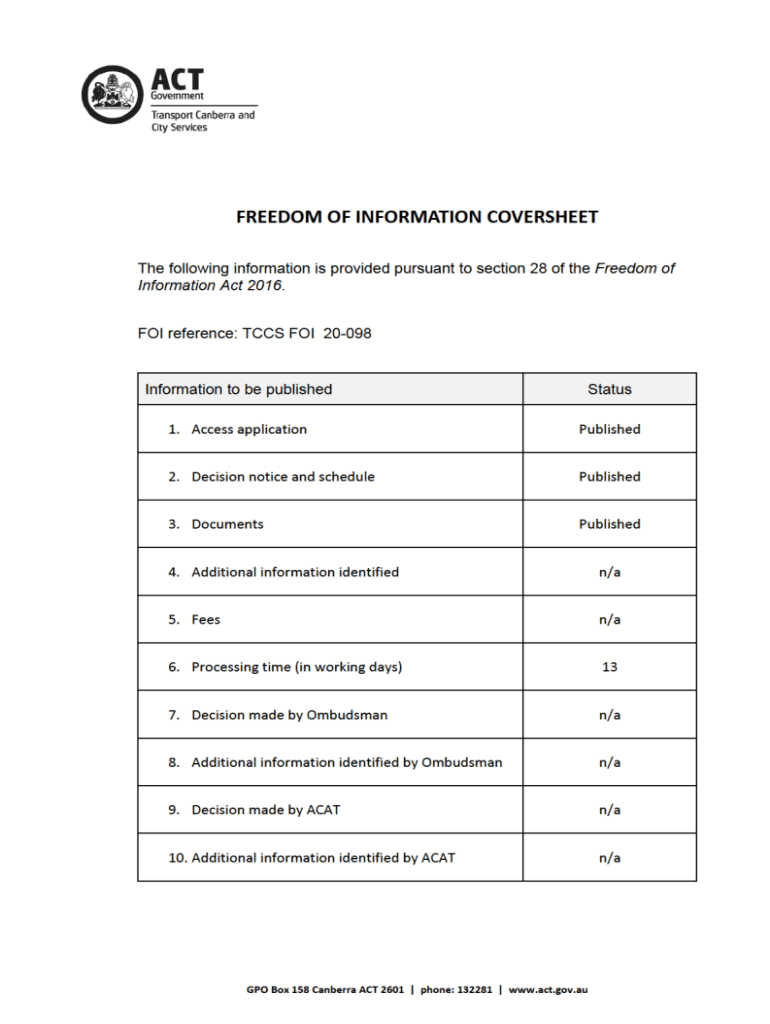 Get the free Access to information - Transport Canberra and City Services