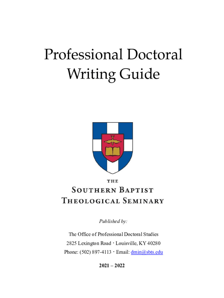 Professional Doctoral Writing GuidePublished by: The Office of Professional Doctoral Studies 2825 Lexington Road Louisville, KY 40280 Phone: (502) 8974113 Email: dmin@sbts.edu 2021 2022TABLE OF CONTENTS