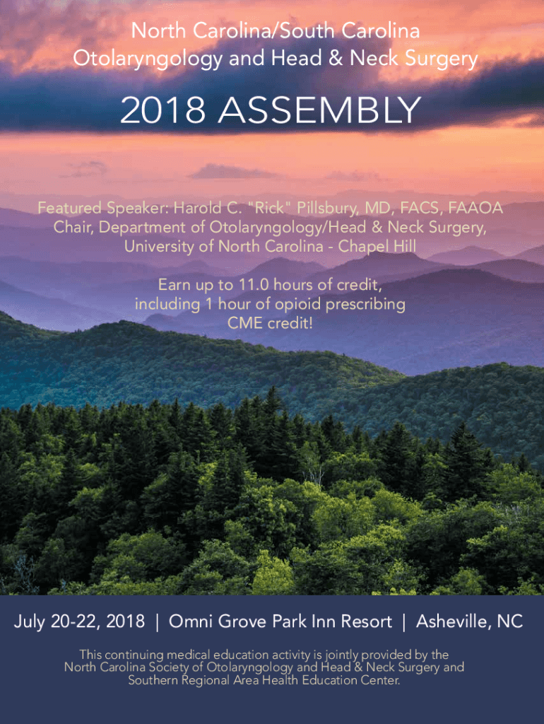 North Carolina/South Carolina Otolaryngology and Head & Neck Surgery2018 ASSEMBLY Featured Speaker: Harold C. \” Rick\” Pillsbury, MD, FACS, FA AOA Chair, Department of Otolaryngology/Head & Neck