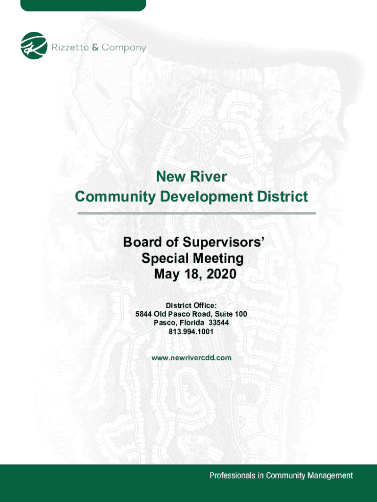 New River Community Development District Board of Supervisors Special Meeting May 18, 2020, District Office: 5844 Old Pasco Road, Suite 100 Pasco, Florida 33544 813.994.1001 www.newrivercdd.comNEW