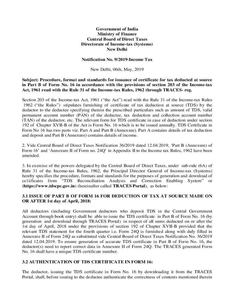 Get the free Revised procedure for issue of Part B of TDS certificate in Form No. 16
