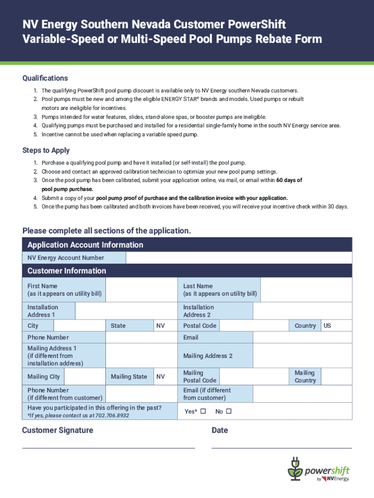 Get the free Southern Nevada Customer PowerShift Discount Form Variable-Speed Pool PumpsNV Energy...