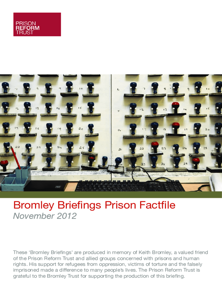 Bradley Briefings Prison Fact file November 2012These Bradley Briefings are produced in memory of Keith Bradley, a valued friend of the Prison Reform Trust and allied groups concerned with prisons