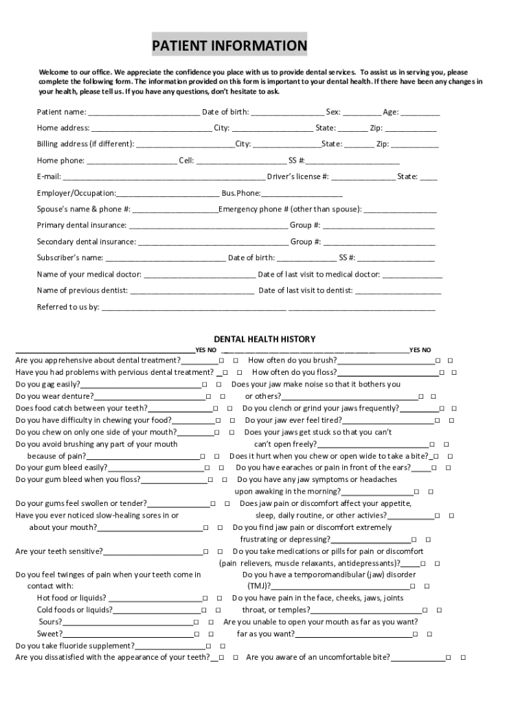 PATIENT INFORMATION Welcome to our office. We appreciate the confidence you place with us to provide dental services. To assist us in serving you, please complete the following form. The information