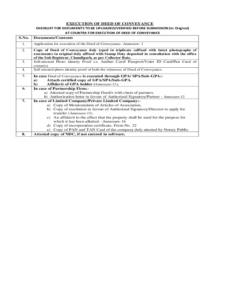Get the free EXECUTION OF DEED OF CONVEYANCE S.No. Documents ...