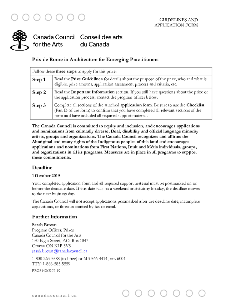 GUIDELINES AND APPLICATION Former de Rome in Architecture for Emerging Practitioners Follow these three steps to apply for this prize:Step 1Read the Prize Guidelines for details about the purpose