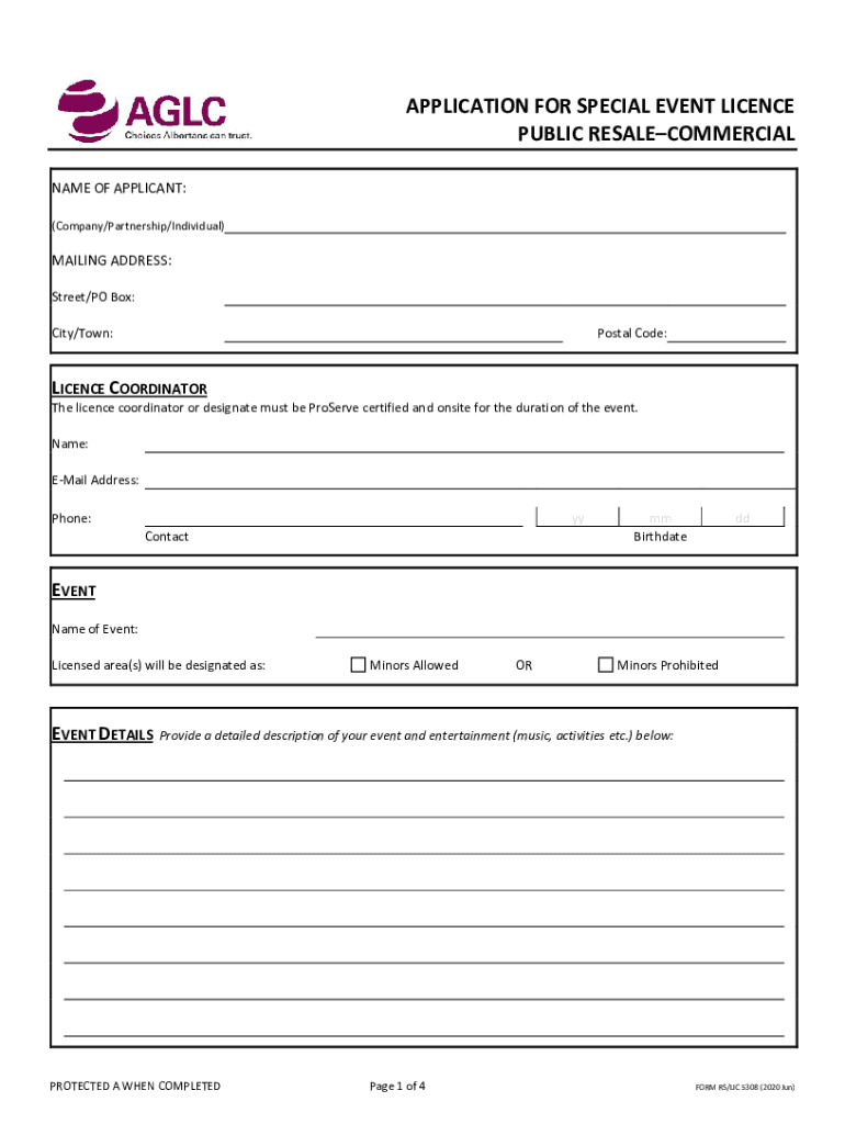 Regulatory Serviceshttp://aglc.special EVENT PUBLIC RESALE COMMERCIAL LIQUOR License To be considered for a liquor license, submit the following: 1. $500 License fee (cash, check drawn on the applicant