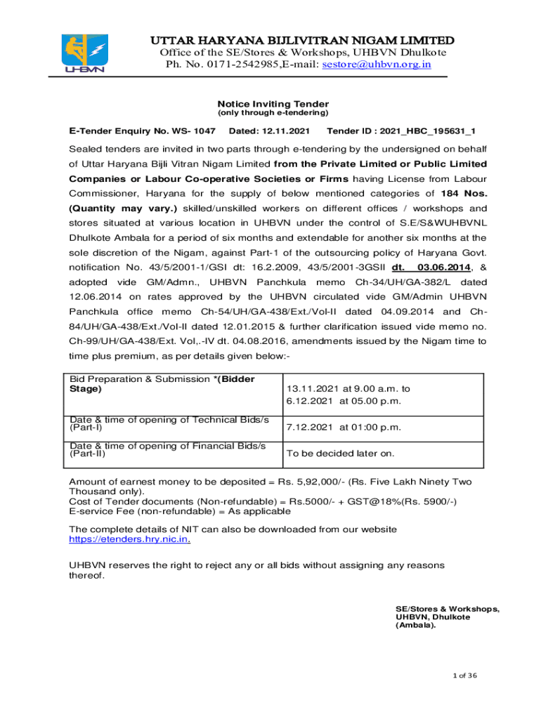 pH. No. 01712542985,Email: sestore@uhbvn.org.inNotice Inviting Tender