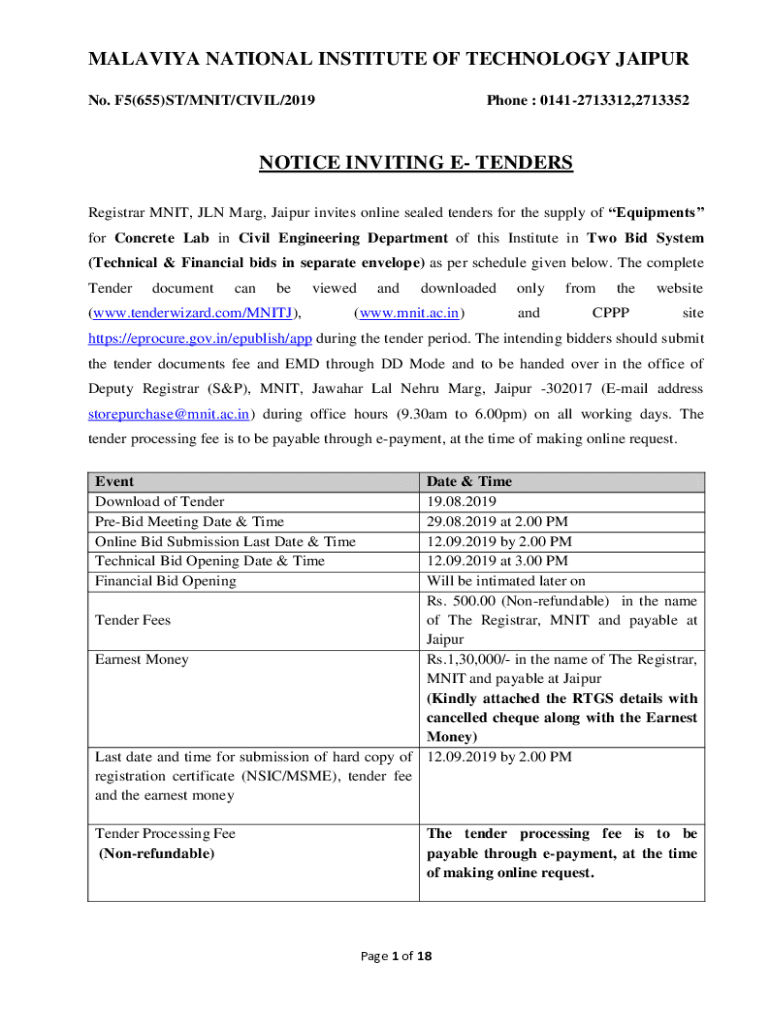 Get the free NOTICE INVITING E- TENDERS