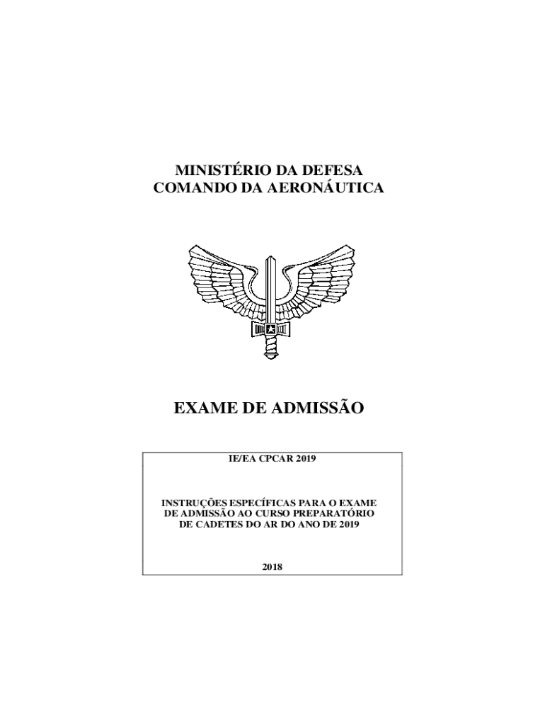 MINISTRY DA DEF ESA COMMANDO DA AERONUTICAEXAME DE ADMISSION IE/EA CPC AR 2019INSTRUES SPECIFICS PARA O EXAM DE ADMISSION AO CURSE PREPARATION DE CADETS DO AR DO ANO DE 20192018MINISTRIO DA DEF ESA
