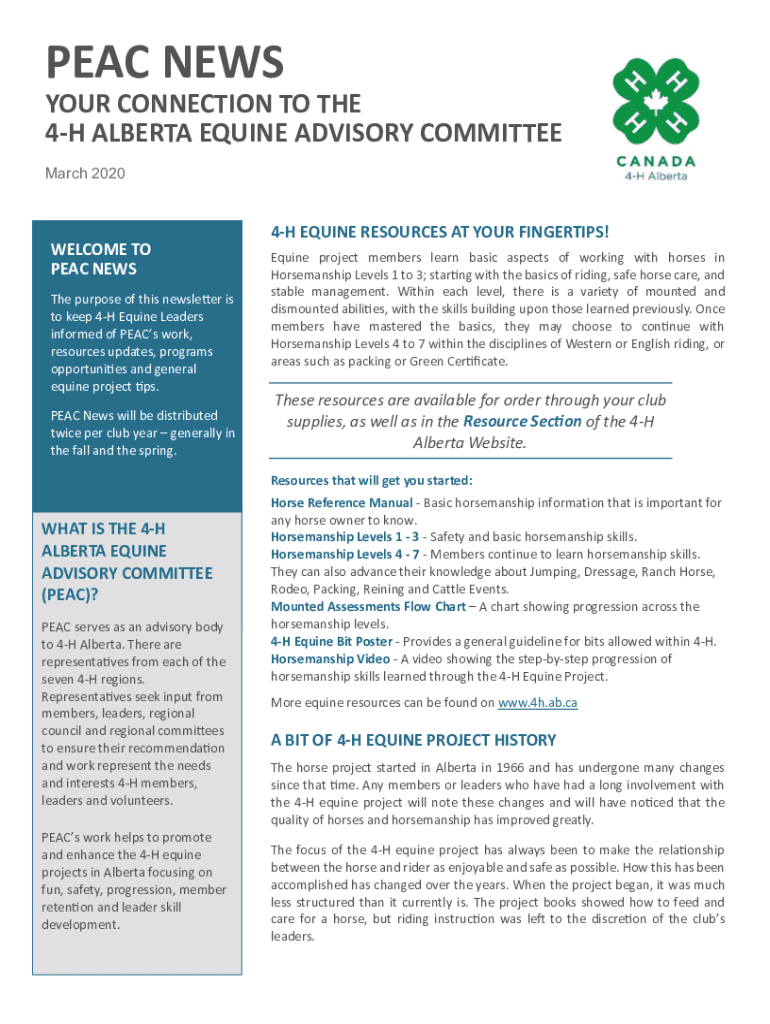 Get the free Provincial 4-H Equine Advisory CommitteePEAC ... - 4-H Alberta