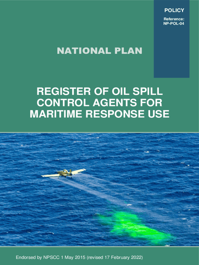 POLICY Reference: NPPOL04NATIONAL PREREGISTER OF OIL SPILL CONTROL AGENTS FOR MARITIME RESPONSE Unendorsed by NP SCC 1 May 2015 (revised 17 February 2022)Register of Oil Spill Control Agents for maritime