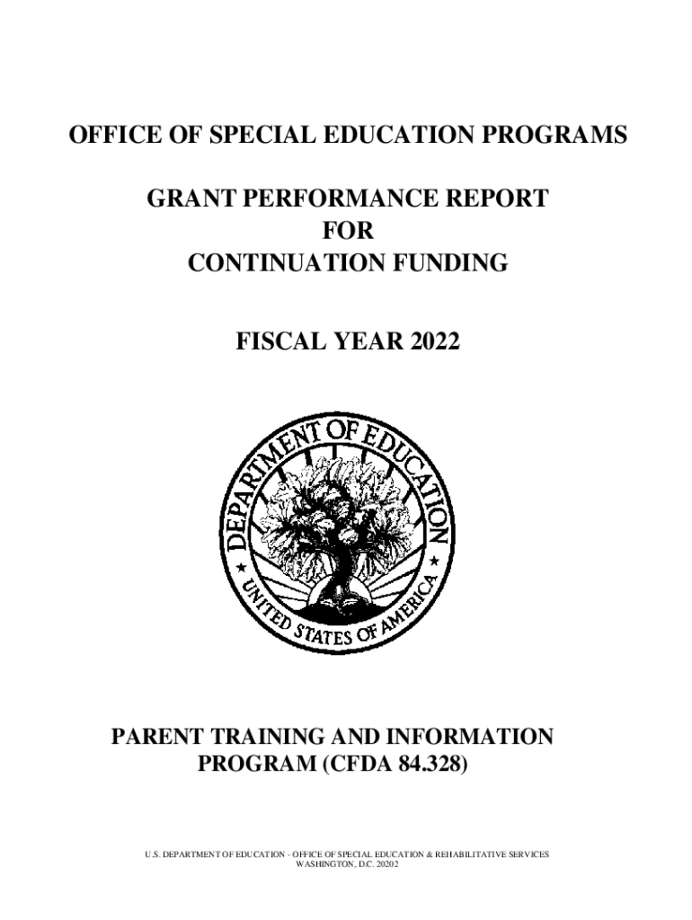 OFFICE OF SPECIAL EDUCATION PROGRAMS GRANT PERFORMANCE REPORT FOR CONTINUATION FUNDING FISCAL YEAR 2022PARENT TRAINING AND INFORMATION PROGRAM (CODA 84.328)U.S. DEPARTMENT OF EDUCATION OFFICE OF SPECIAL