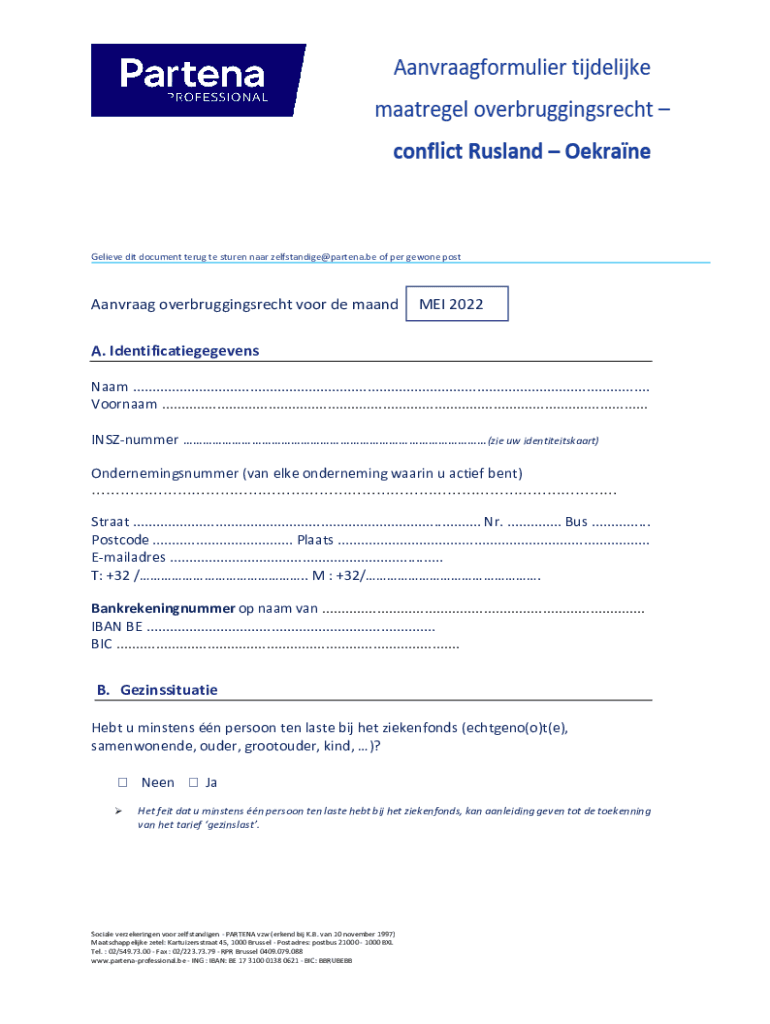 Believe it document trug the sure near zelfstandige@partena.be of per Guion postAanvraag overbruggingsrecht poor de Andrei 2022A. Identificatiegegevens