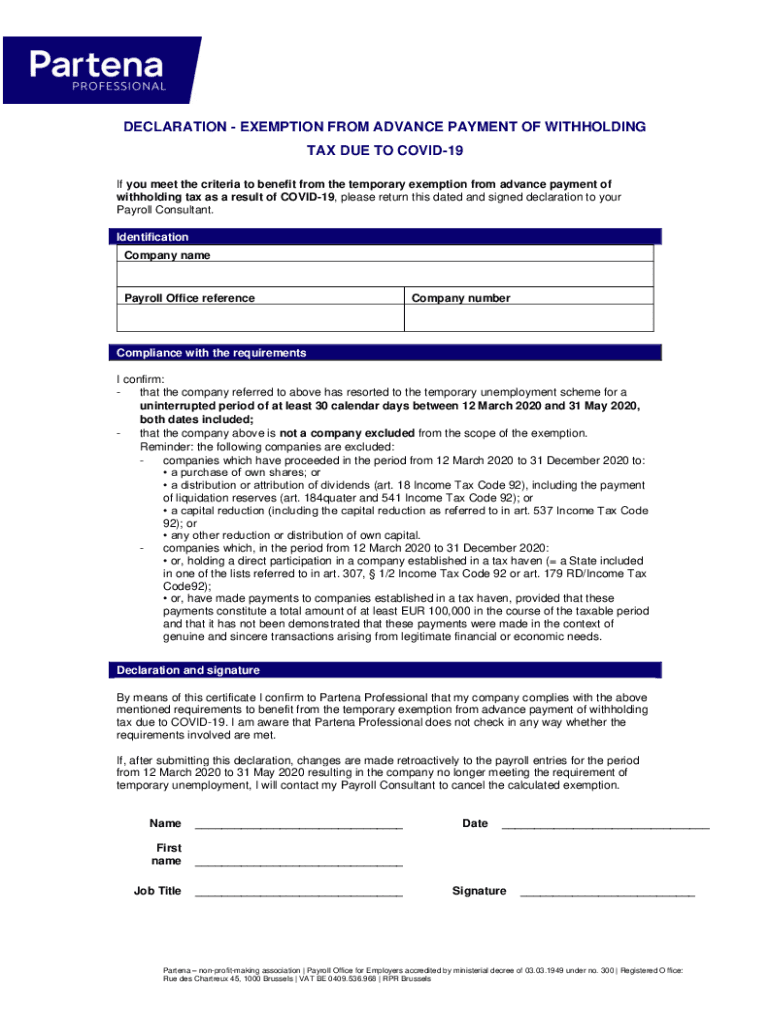DECLARATION EXEMPTION FROM ADVANCE PAYMENT OF WITHHOLDING