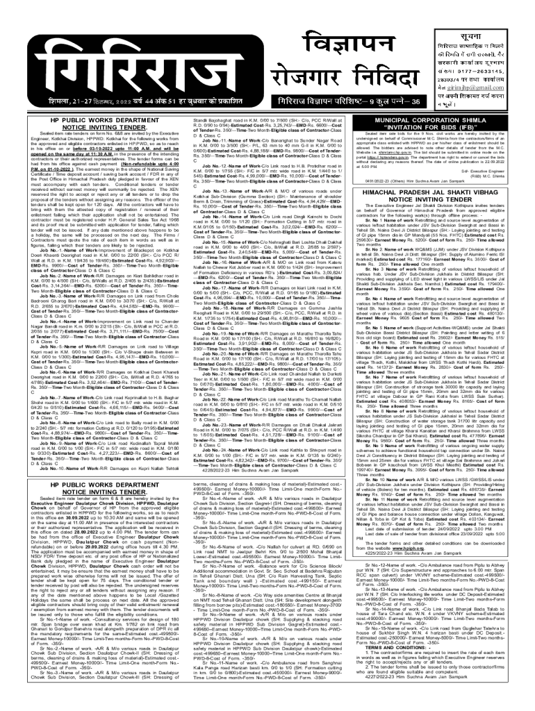 Girirajhp@gmail.comflrEcj] 2022 HP PUBLIC WORKS DEPARTMENT NOTICE INVITING TENDER. Sealed item rate tenders on form No. 6&8 are invited by the Executive Engineer, Thai Division, HOPED: Thai for the