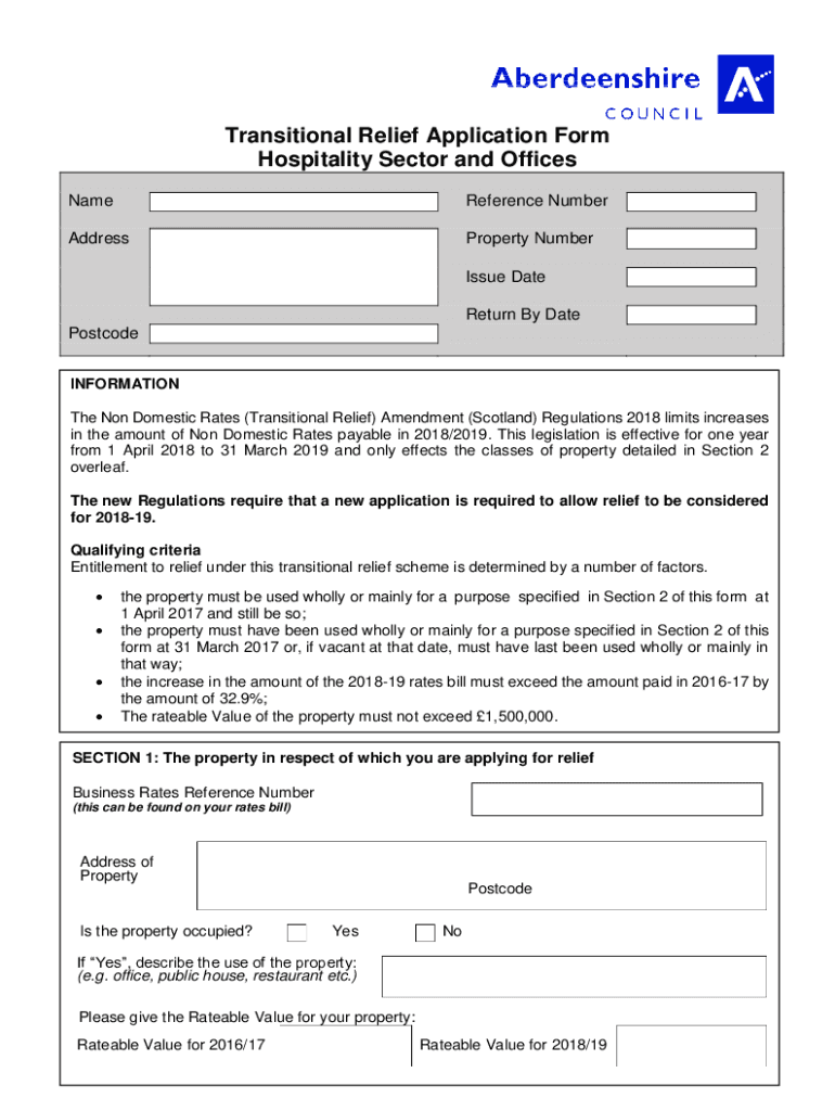 Get the free Business Rates - Transitional Relief Application Form 2018-19 ...