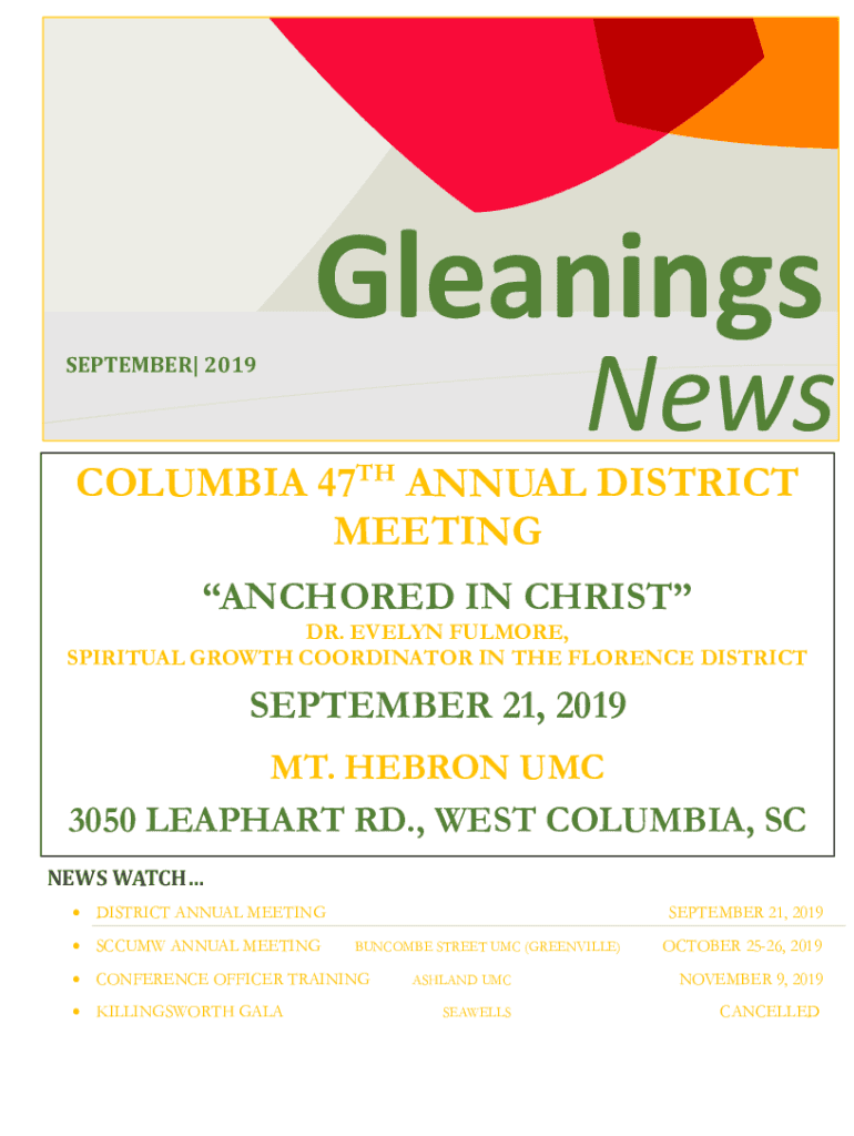 GleaningsNewsSEPTEMBER| 2019COLUMBIA 47TH ANNUAL DISTRICT