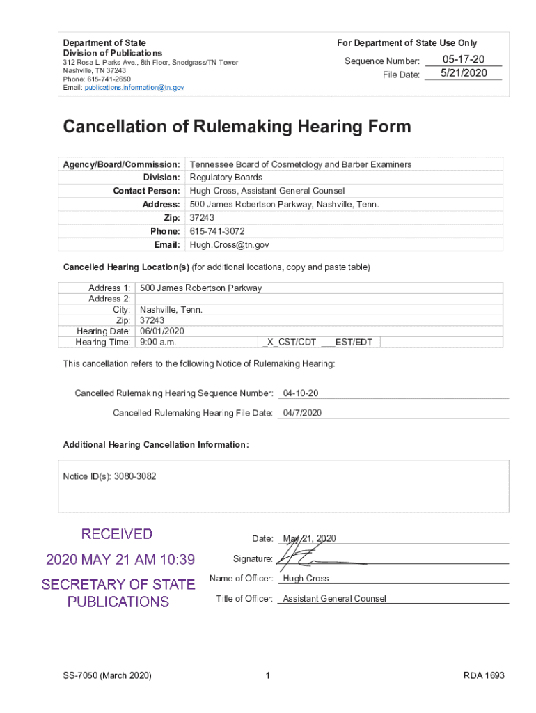 Get the free Tennessee Board of Cosmetology and Barber Examiners