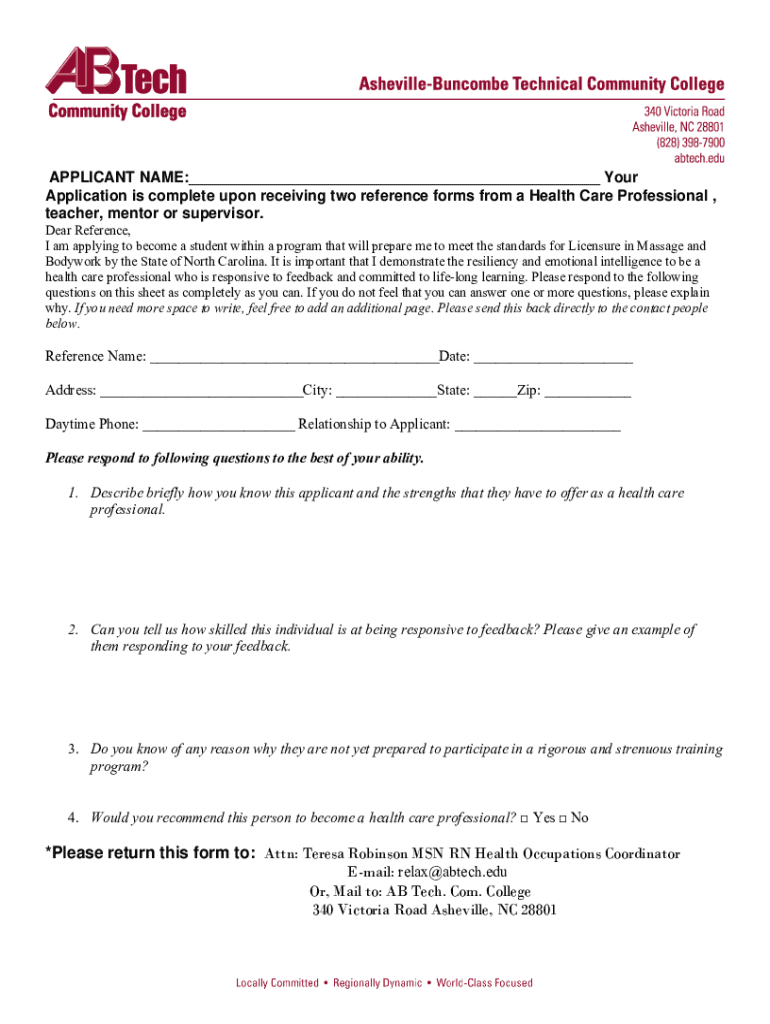 APPLICANT NAME:___ Your Application is complete upon receiving two reference forms from a Health Care Professional, teacher, mentor or supervisor. Dear Reference, I am applying to become a student