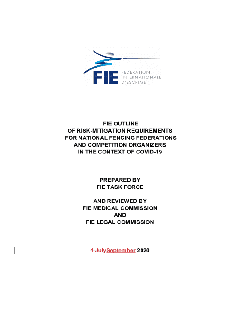 FIE OUTLINE OF RISKMITIGATION REQUIREMENTS FOR NATIONAL FENCING FEDERATIONS AND COMPETITION ORGANIZERS IN THE CONTEXT OF COVID19PREPARED BY FIE TASK FORCE AND REVIEWED BY FIE MEDICAL COMMISSION AND