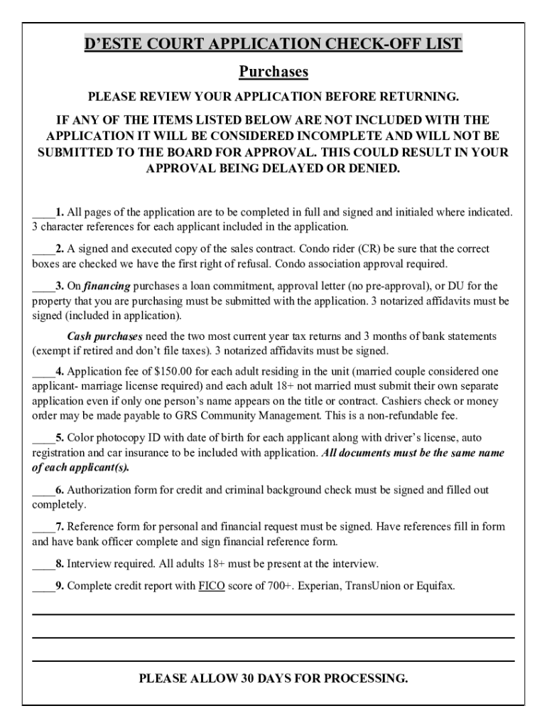 DESE COURT APPLICATION CHECKOFF LIST Purchases PLEASE REVIEW YOUR APPLICATION BEFORE RETURNING. IF ANY OF THE ITEMS LISTED BELOW ARE NOT INCLUDED WITH THE APPLICATION IT WILL BE CONSIDERED INCOMPLETE