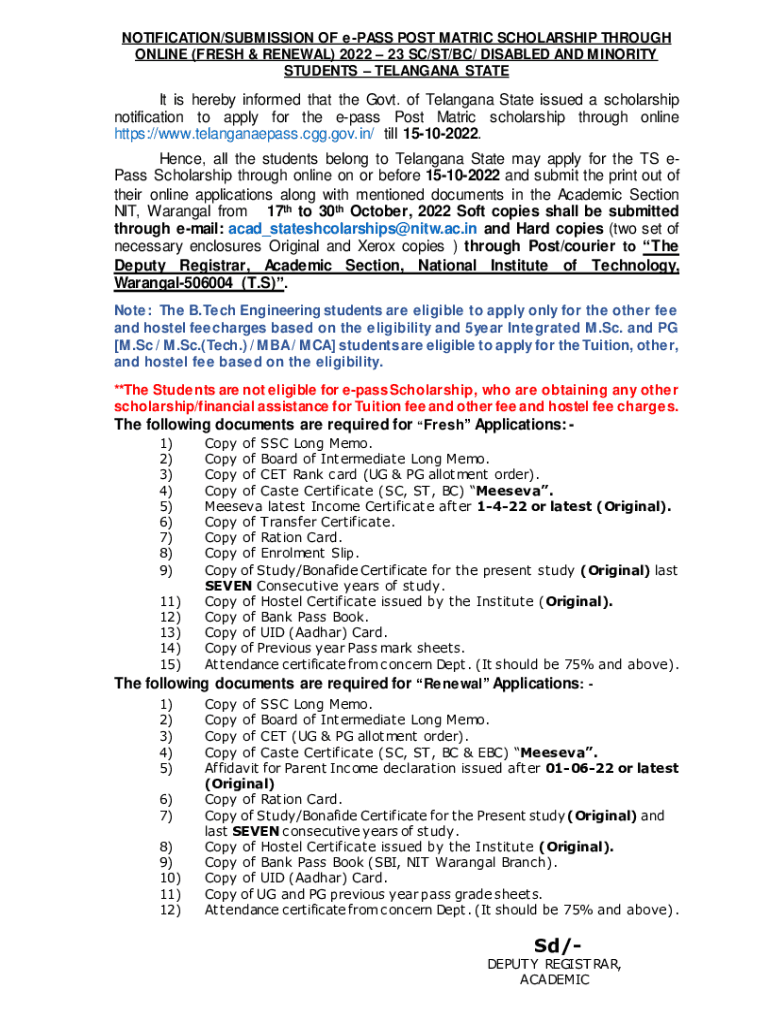 Get the free Telangana Epass Scholarship Application Status Apply Fresh ...