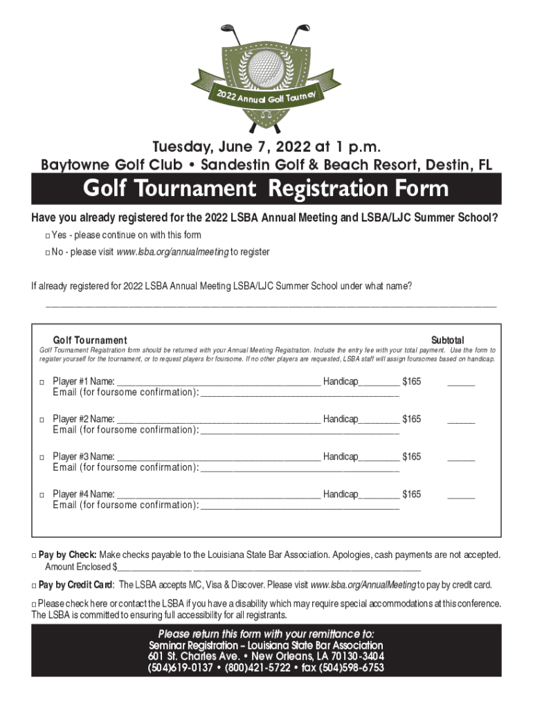 Baytown Golf Club Sandstone Golf & Beach Resort, Destiny, Golf Tournament Registration Forgave you already registered for the 2022 LSA Annual