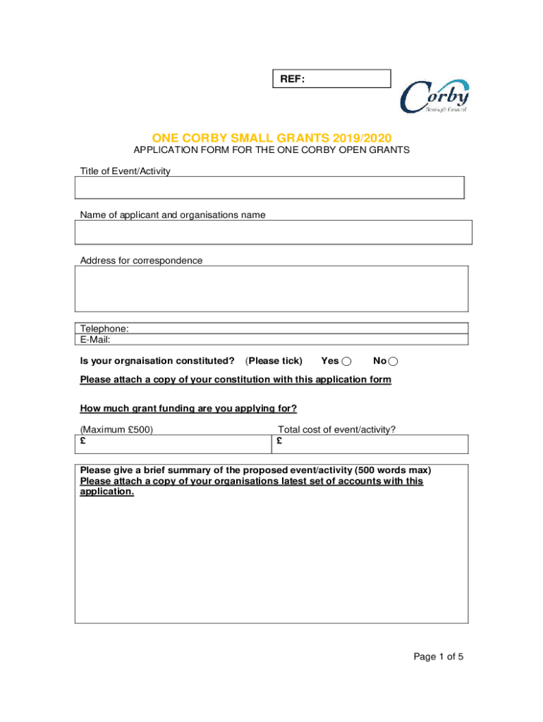 REF:ONE COLBY SMALL GRANTS 2019/2020 APPLICATION FORM FOR THE ONE COLBY OPEN GRANTS Title of Event/ActivityName of applicant and organizations headdress for correspondenceTelephone: Email: Is your