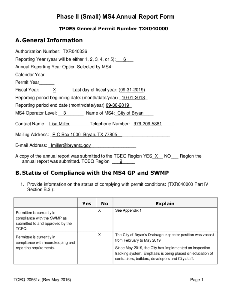 Phase II (Small) MS4 Annual Report Form TIDES General Permit Number TXR040000A. General Information Authorization Number: TXR040336 Reporting Year (year will be either 1, 2, 3, 4, or 5):___6___ Annual