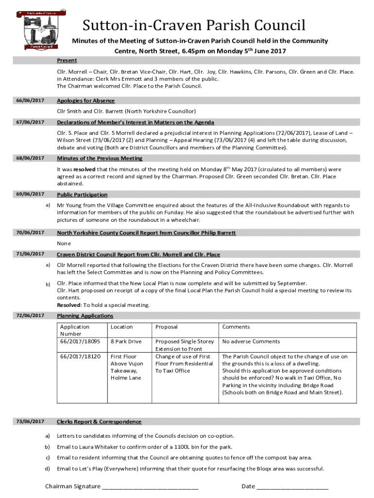 Minutes of the Meeting of SuttoninCraven Parish Council held in the Community