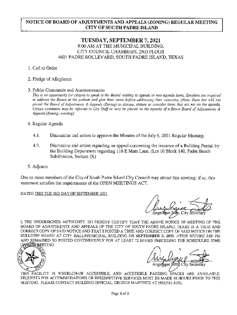 Item No. 4.1 CITY OF SOUTH PADRE ISLAND BOARD OF ADJUSTMENTS AND APPEALS AGENDA REQUEST COMMENTING DATE: September 7, 2021, NAME & TITLE: Marta Martinez DEPARTMENT: Planning/Parks & Rec. Department