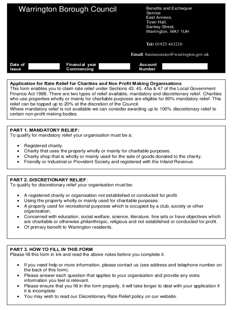 Warrington Borough CouncilBenefits and Exchequer Service East Annexed, Town Hall, Sanka Street, Warrington, WA1 1UHTel: 01925 443210 Email: businessrates@warrington.gov.uk Date of IssueFinancial year