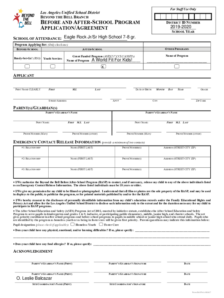 To fill out before and after school documentation, gather all required information such as program details, participant lists, and operational plans, and complete the forms as instructed by the governing body.