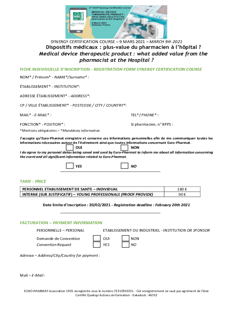 SYNERGY CERTIFICATION COURSE 9 MARS 2021 MARCH 9th 2021Dispositifs medical : plus value Du pharmacies capital ? Medical device therapeutic product : what added value from the pharmacist at the Hospital